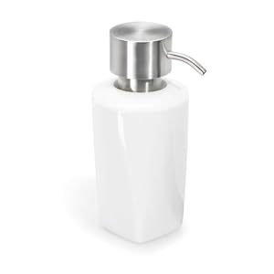 Die Materialkombination aus Porzellan und Edelstahl läßt den Seifenspender sehr edel wirken.